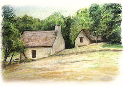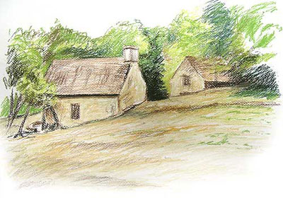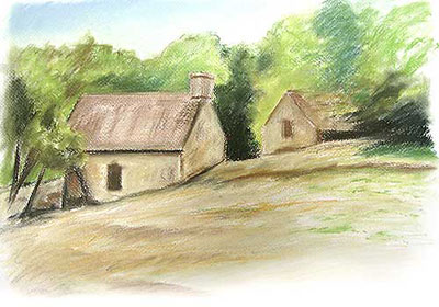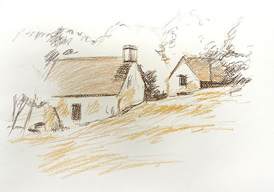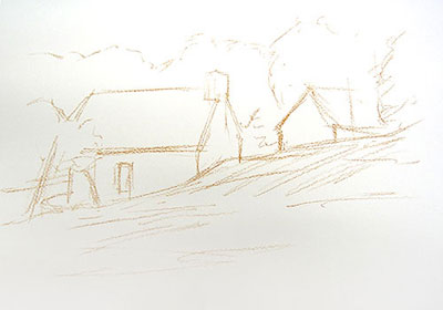 Une esquisse est réalisée rapidement à l'aide d'un pastel