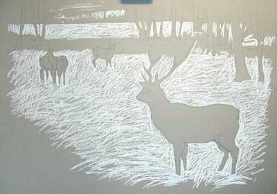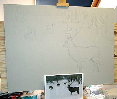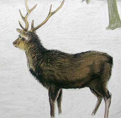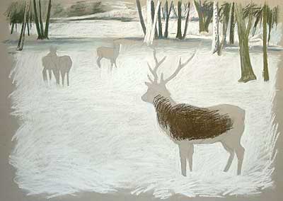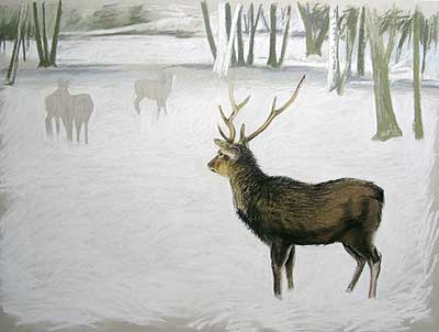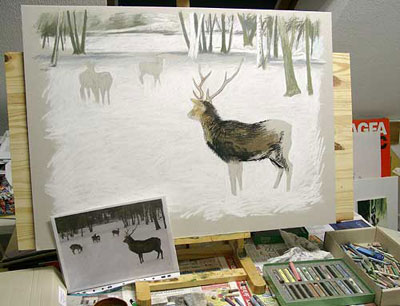 pastels doux, craies d'art, pierre noire. Carton gris épais.