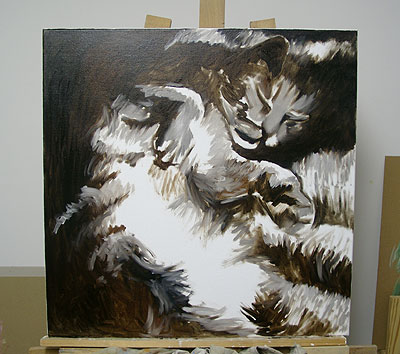 et Terre de Sienne brûlée) et en de larges coups de brosse plate.