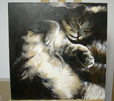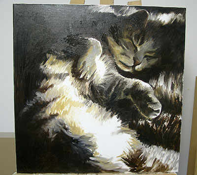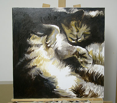 des ombres sur la patte levée, et sur la tête qui est ébauchée