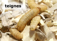 teigne : il s'agit en fait de la larve du papilon des ruches. C'est